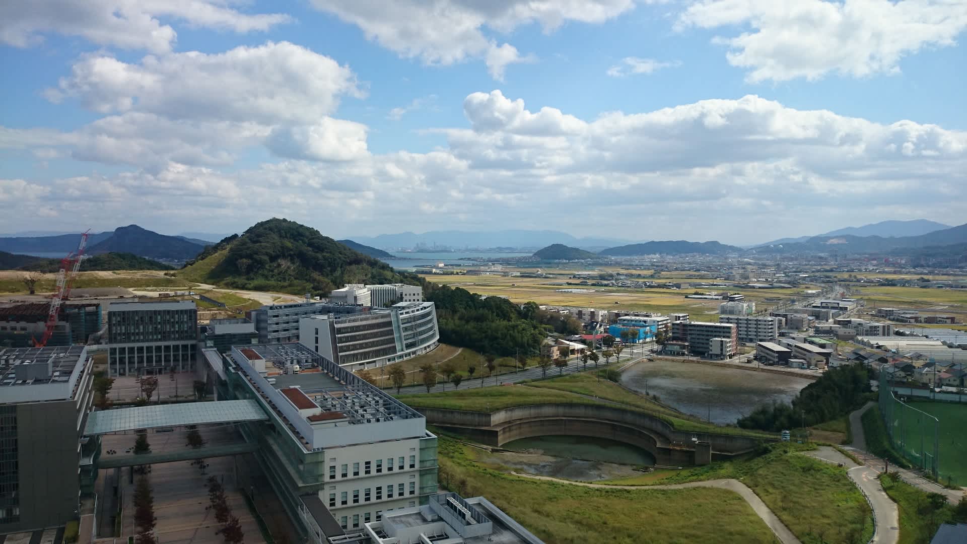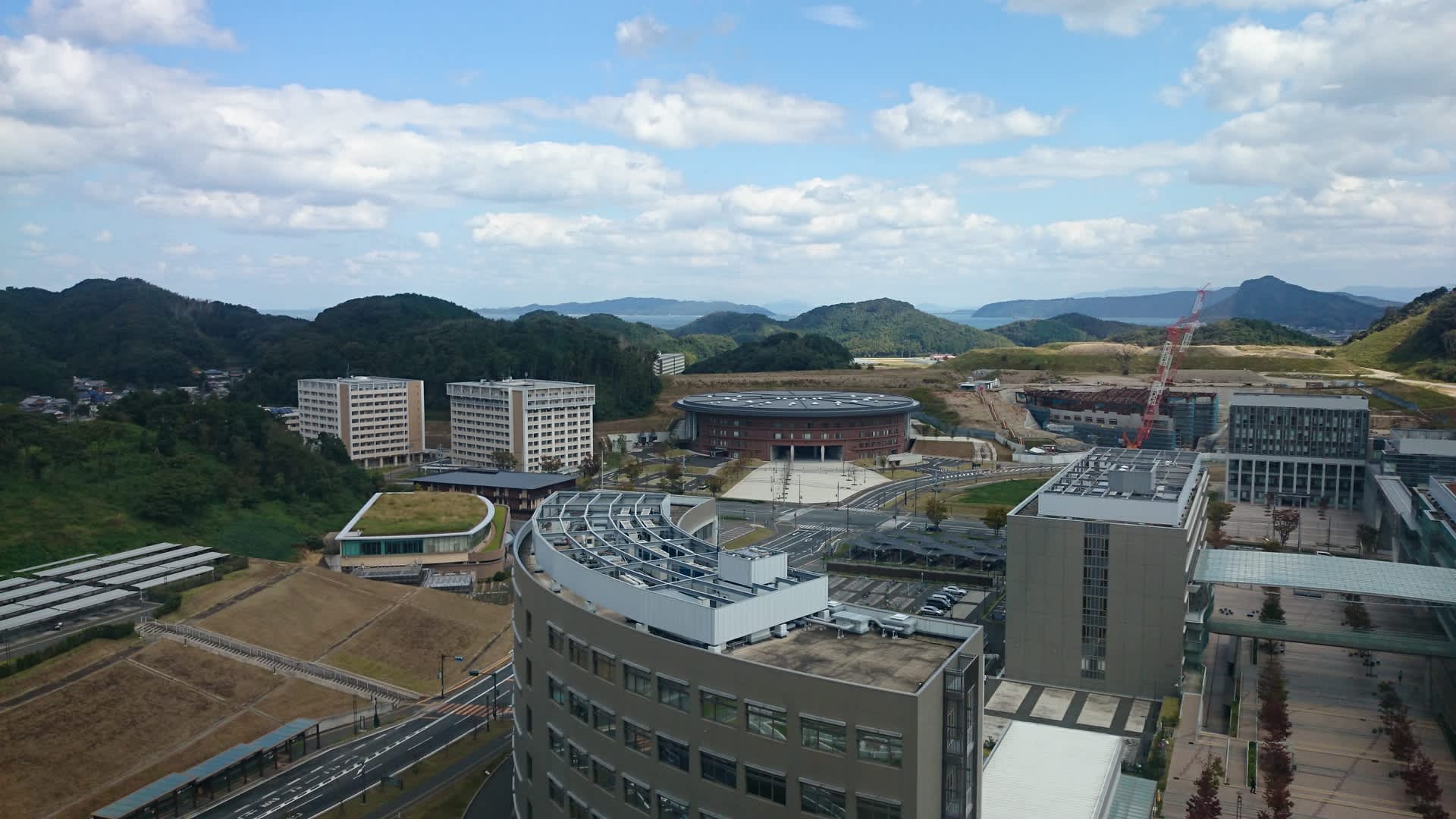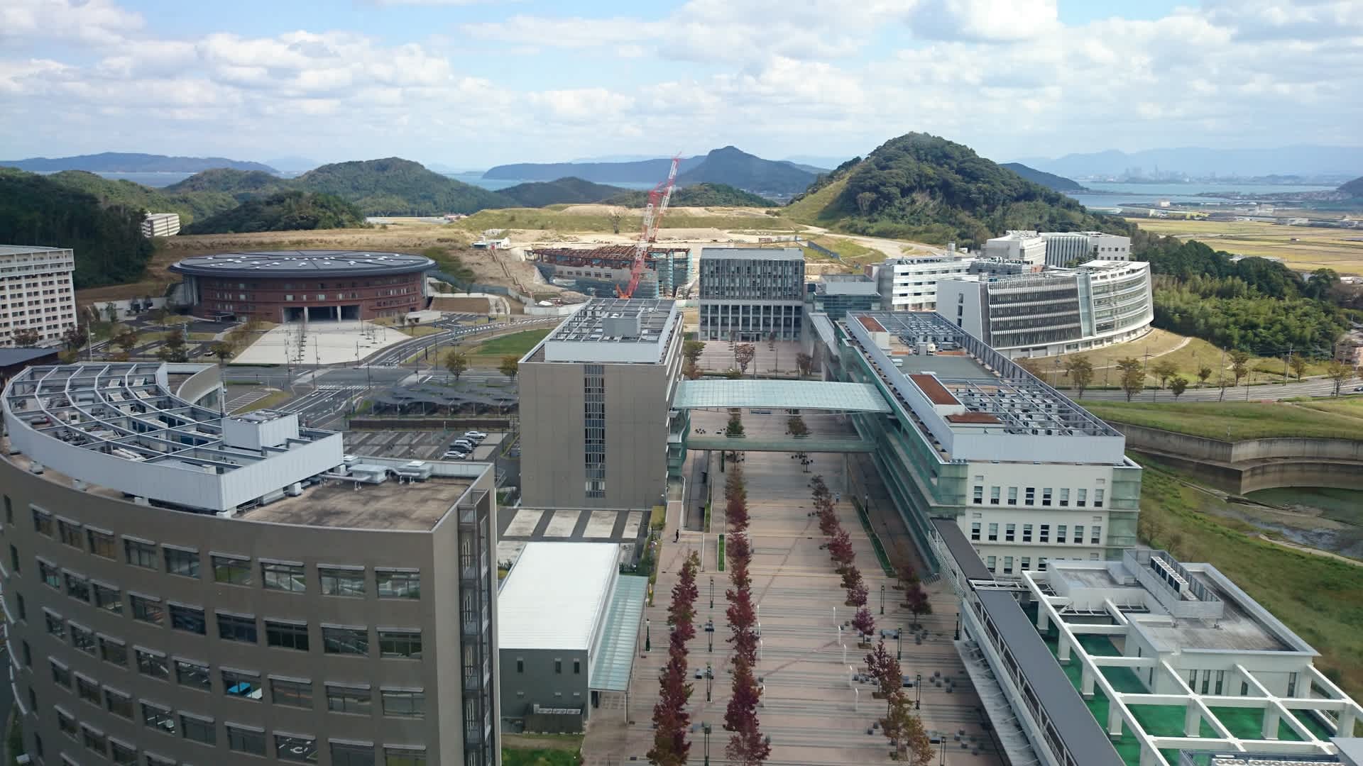 中央図書館(以下の写真内でクレーンが立っている建築現場)が現在、建造中です。